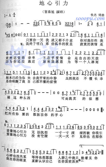 言承旭演唱的地心引力歌词,地心引力简谱.