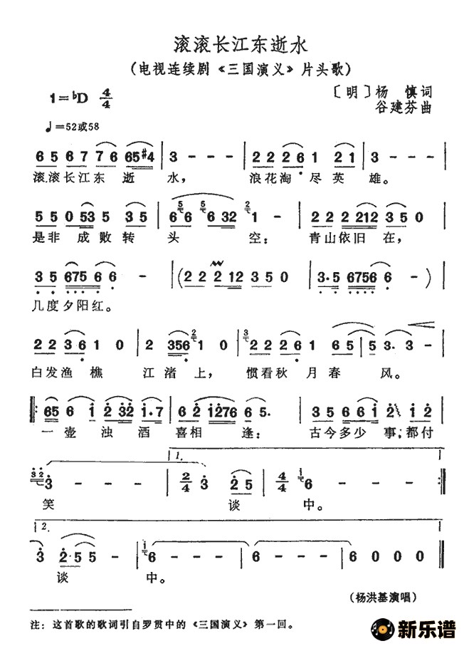 杨鸿基演唱的滚滚长江东逝水歌词,滚滚长江东逝水简谱.