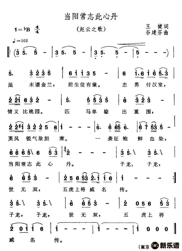 演唱的当阳常志此丹心歌词,当阳常志此丹心简谱.