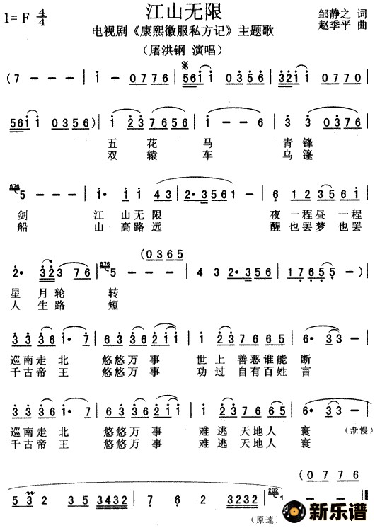 屠洪刚演唱的江山无限歌词,江山无限简谱.