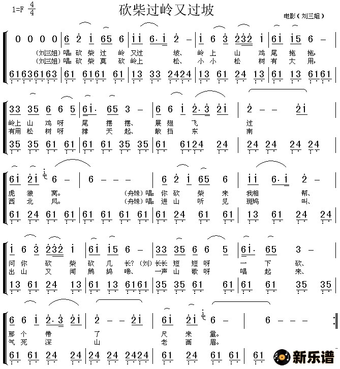 傅锦华演唱的砍柴过岭又过坡歌词,砍柴过岭又过坡简谱.