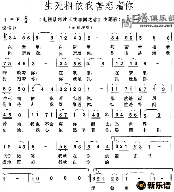 演唱的生死相依我苦恋着你歌词,生死相依我苦恋着你简谱.