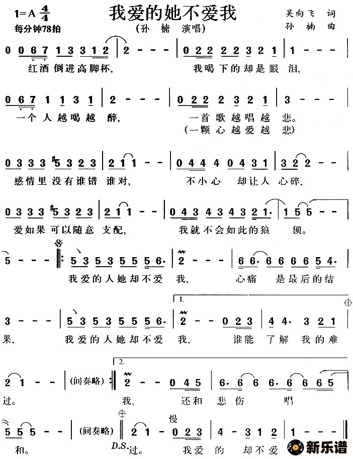 演唱的我爱的她不爱我歌词,我爱的她不爱我简谱.