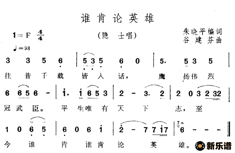 演唱的谁肯论英雄歌词,谁肯论英雄简谱.
