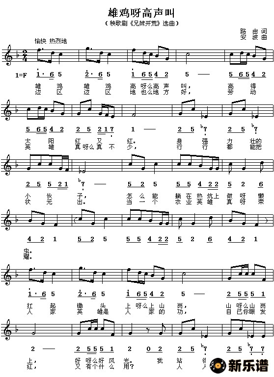 演唱的雄鸡呀高声叫歌词,雄鸡呀高声叫简谱.