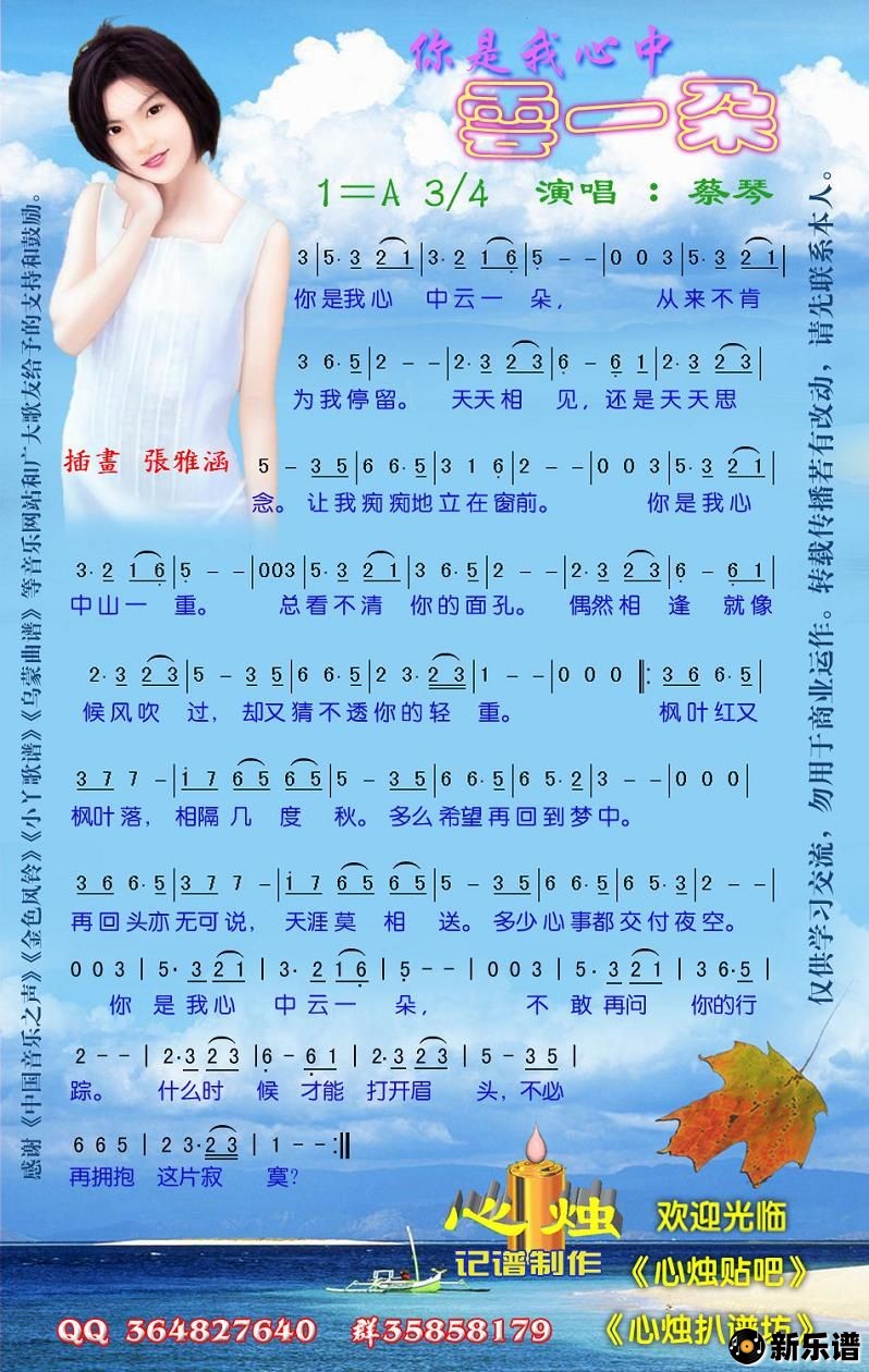 《你是我心中云一朵》简谱 蔡琴-心烛制谱