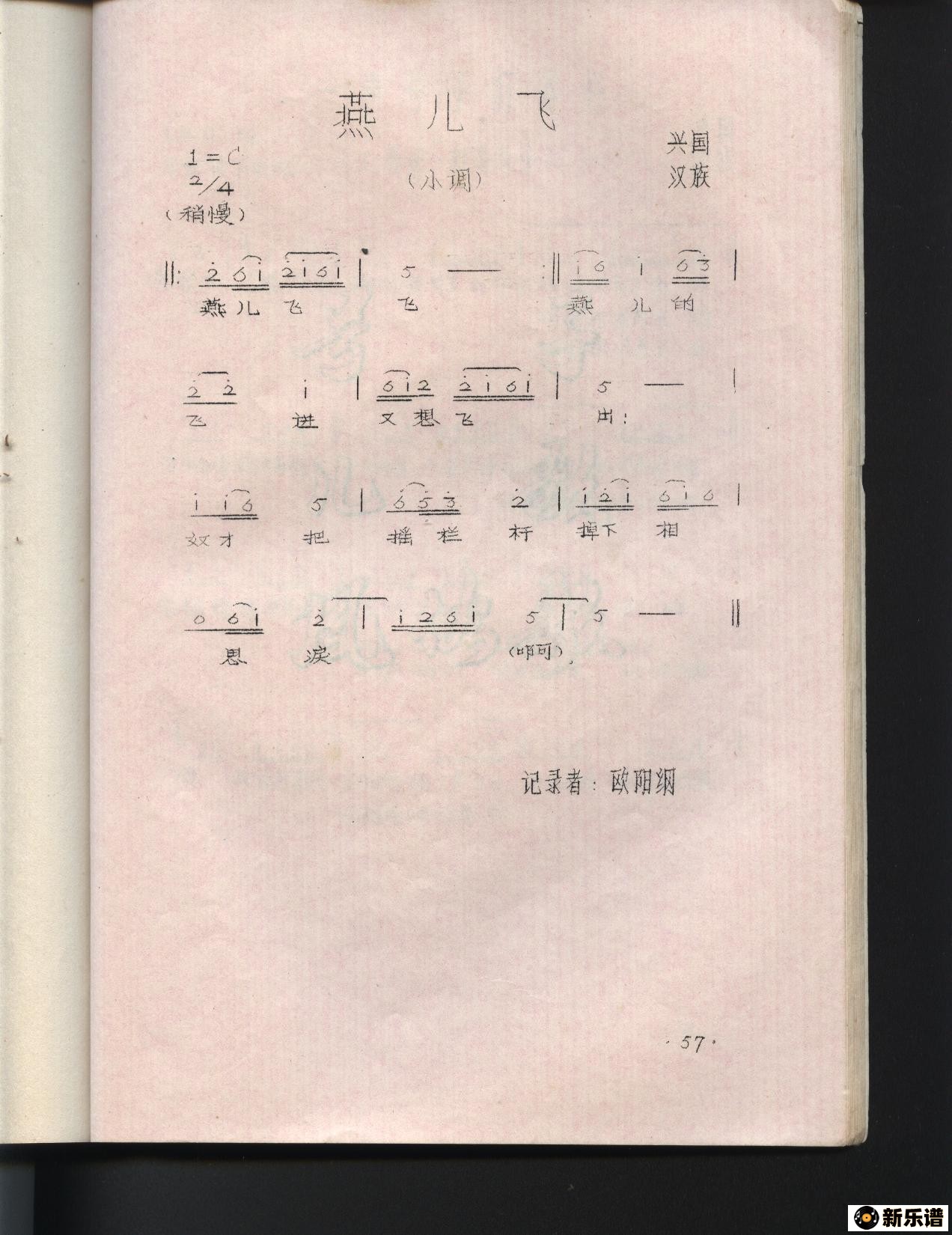 《燕儿飞(江西兴国山歌)》简谱 欧阳纲
