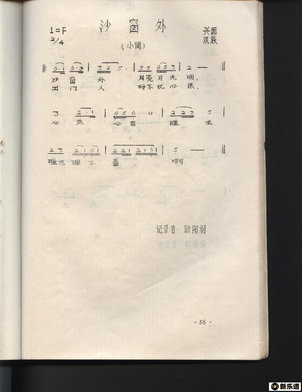 欧阳纲演唱的沙窗外(江西兴国山歌)歌词,沙窗外(江西兴国山歌)简谱.