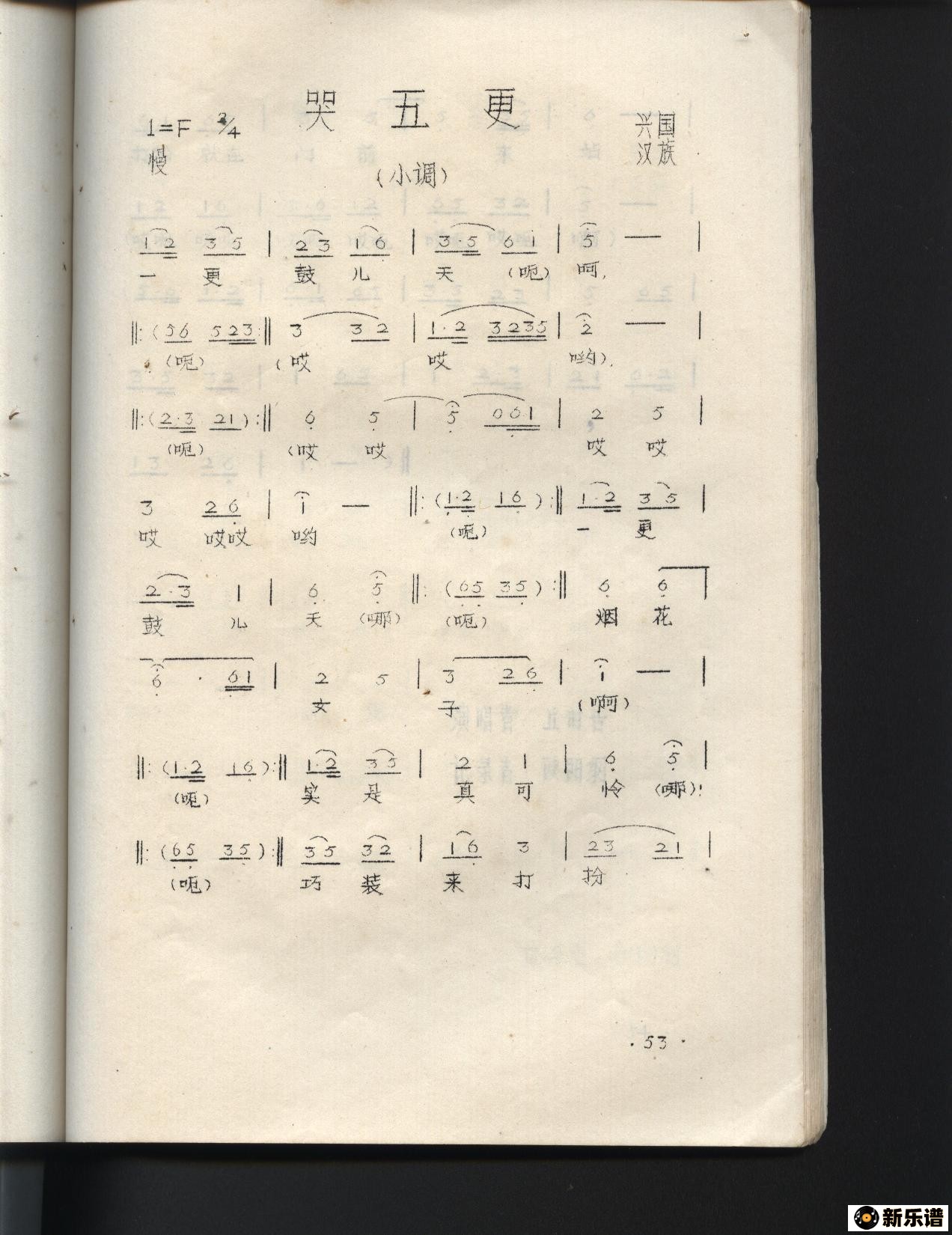 演唱的哭五更(江西兴国山歌)歌词,哭五更(江西兴国山歌)简谱.