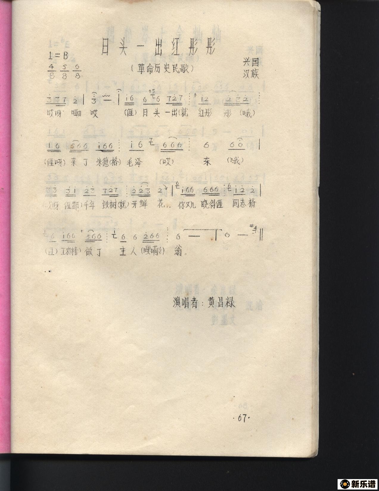 黄昌禄演唱的日头一出红彤彤(江西兴国山歌)歌词,日头一出红彤彤(江西兴国山歌)简谱.