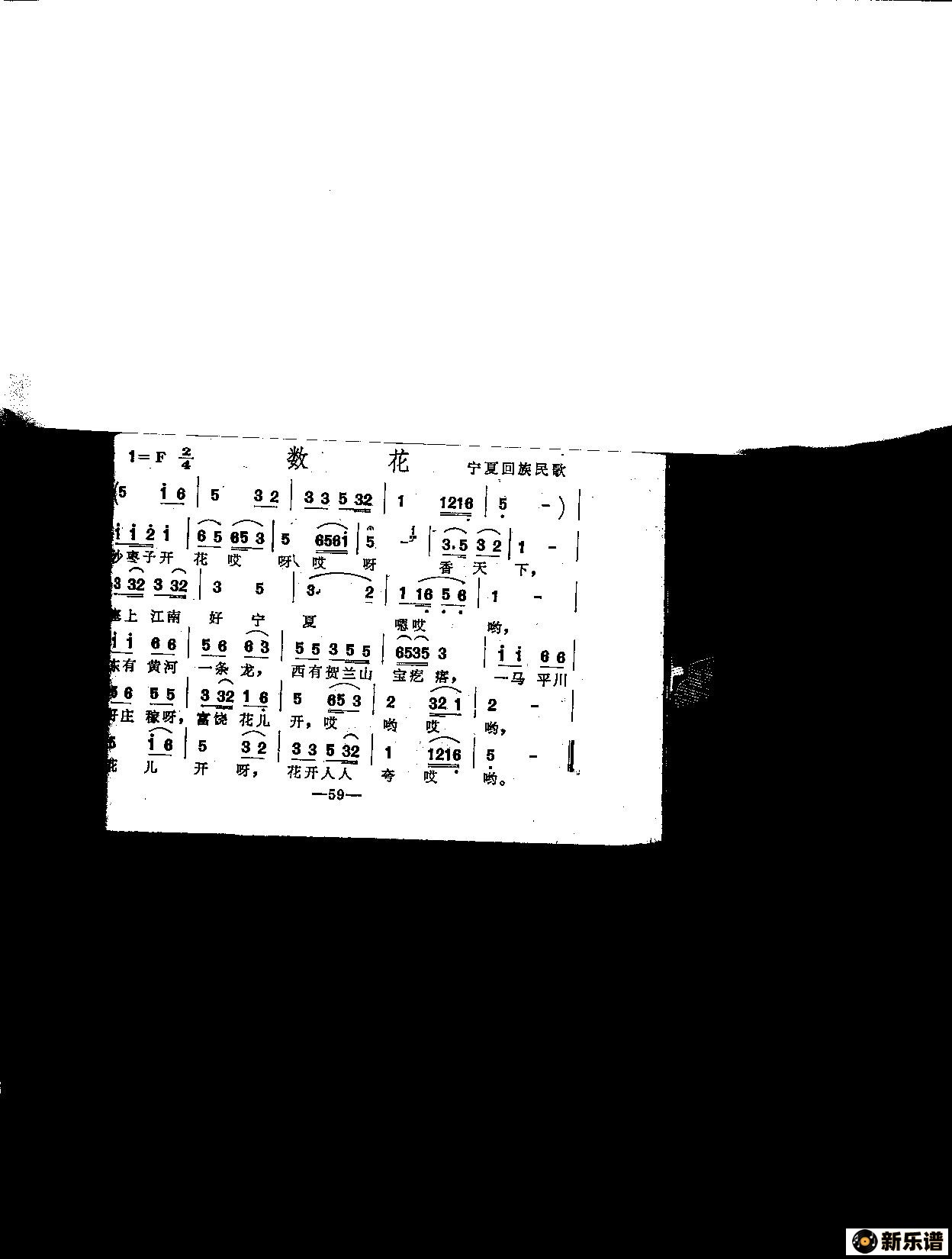 演唱的数花(宁夏回族民歌)歌词,数花(宁夏回族民歌)简谱.