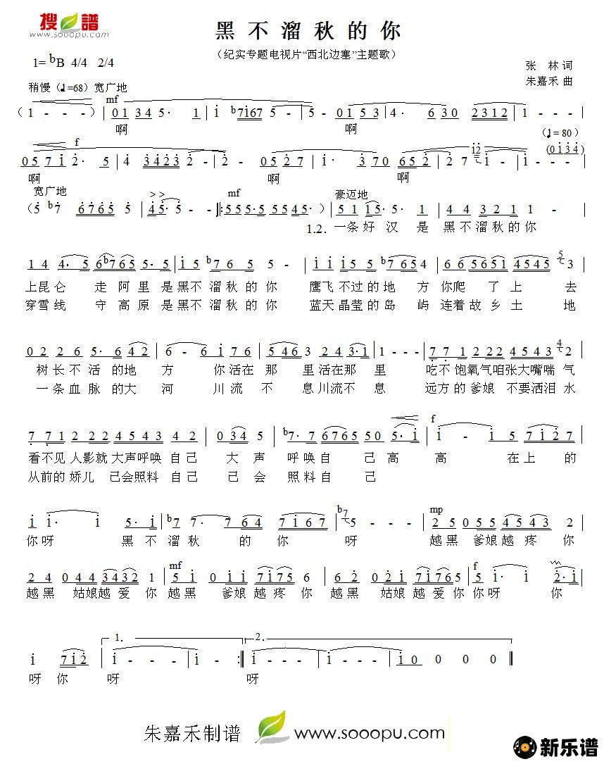 《黑不溜秋的你》简谱 李娜-小叶子制谱