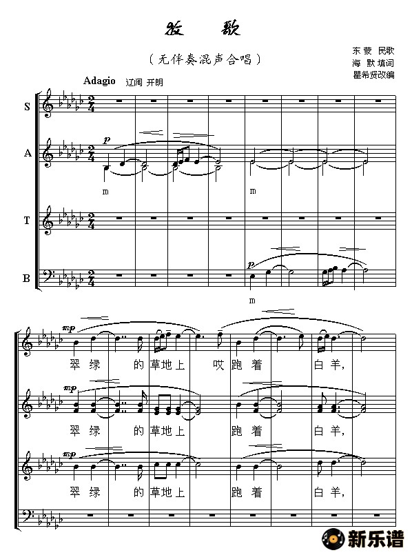 《牧歌[混声合唱]》简谱 青海音协合唱