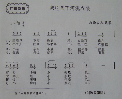 刘改鱼演唱的亲圪旦下河洗衣裳(山西左权民歌)歌词,亲圪旦下河洗衣裳(山西左权民歌)简谱.