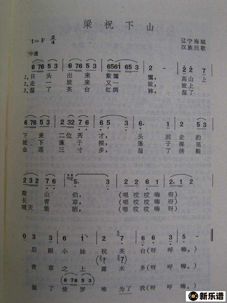 演唱的梁祝下山(辽宁民歌)歌词,梁祝下山(辽宁民歌)简谱.