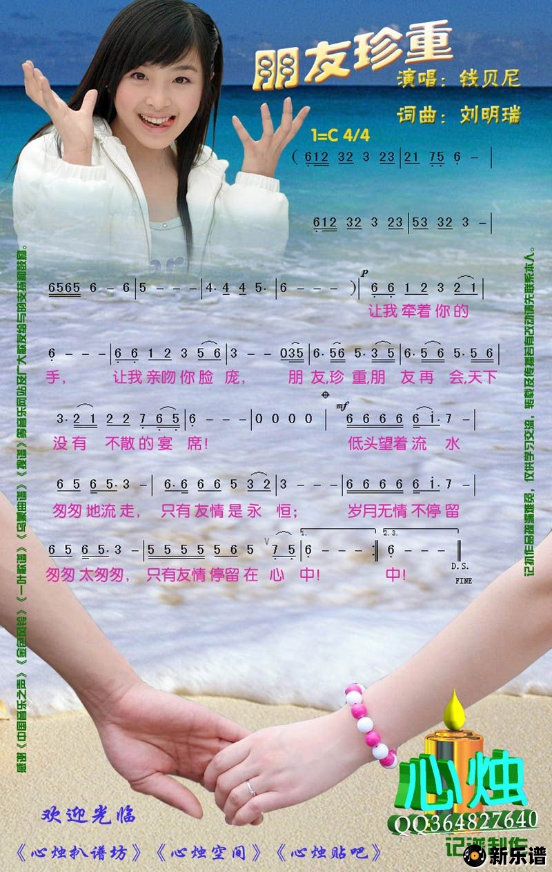 《朋友珍重》简谱 钱贝尼-心烛制谱