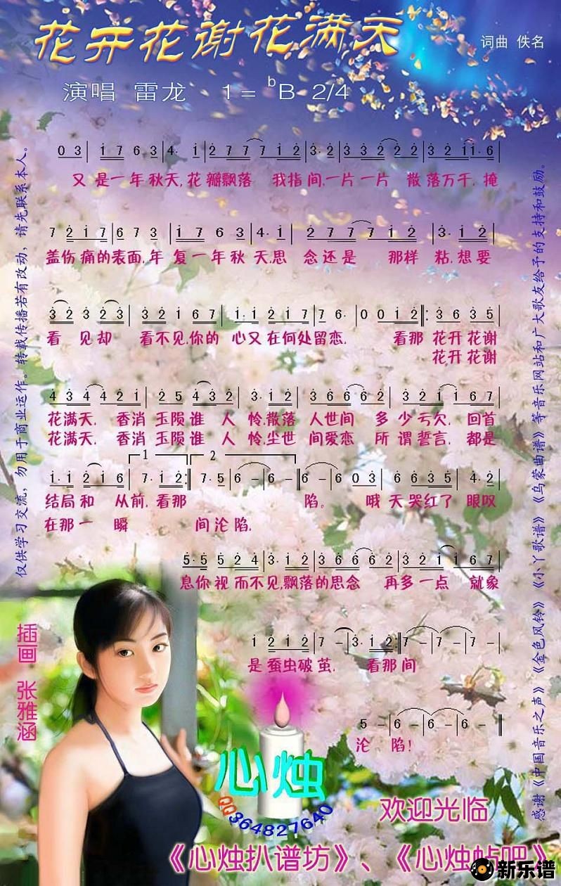 《花开花谢花满天》简谱 雷龙-心烛制谱