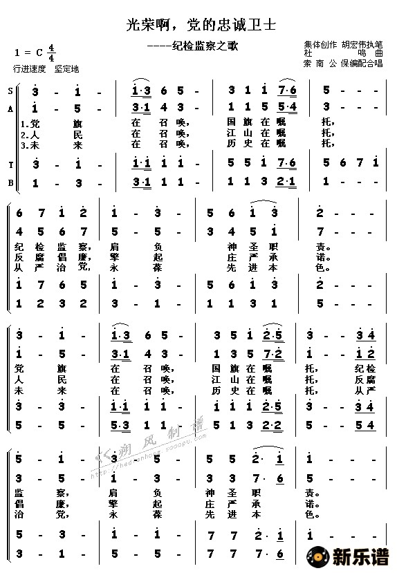 《光荣啊,党的忠诚卫士(合唱)》简谱 青海音协合唱