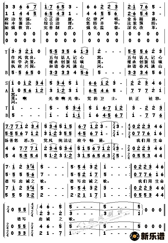 > 光荣啊,党的忠诚卫士(合唱)简谱