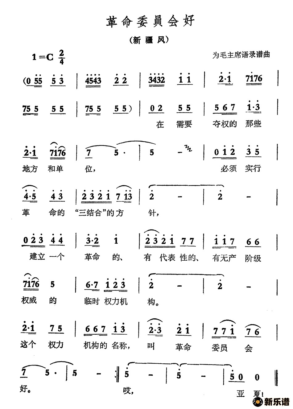 演唱的革命委员会好(新疆风)歌词,革命委员会好(新疆风)简谱.