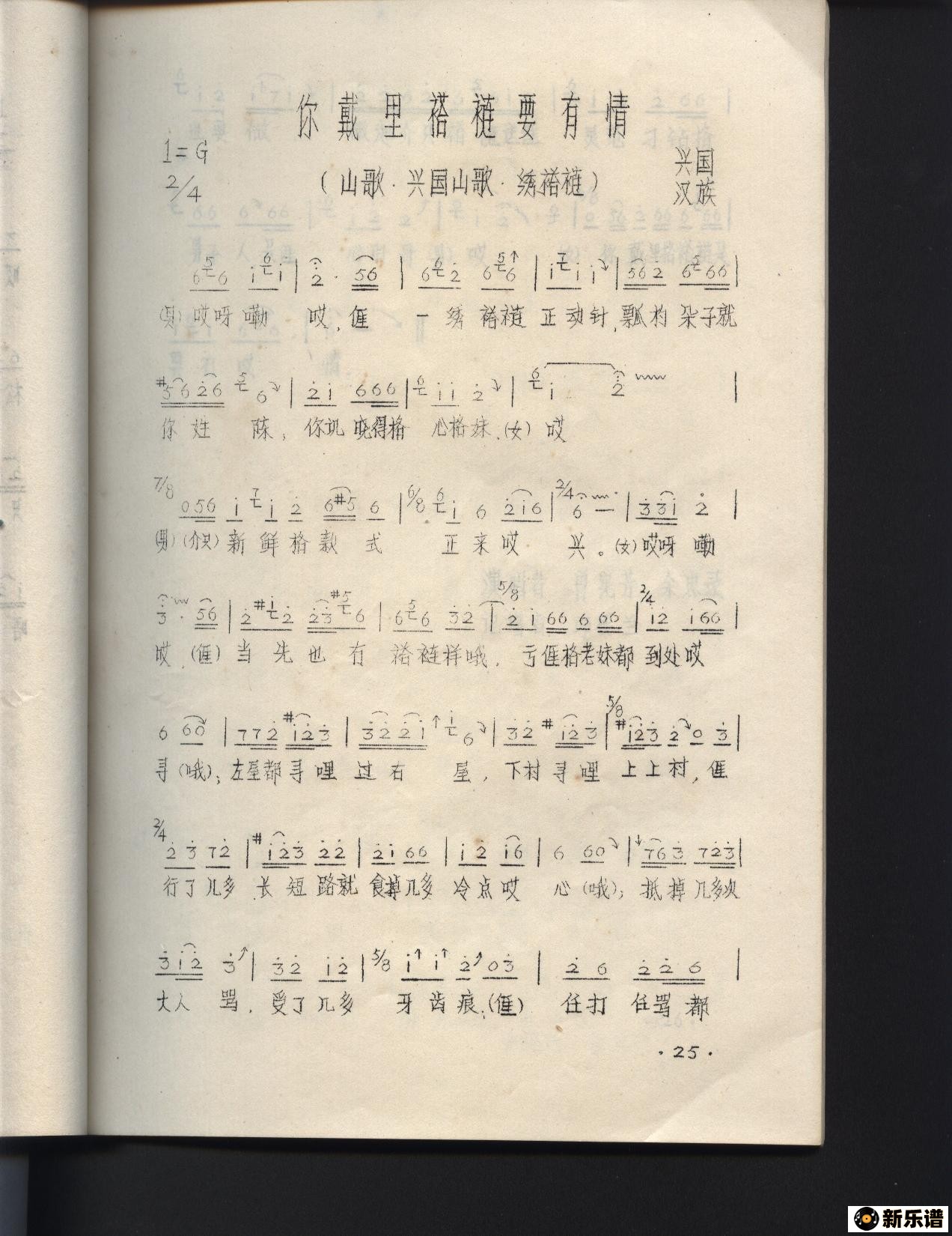 《你戴里褡裢要有情(江西兴国山歌)(1)》简谱 曾宪芳 余忠录