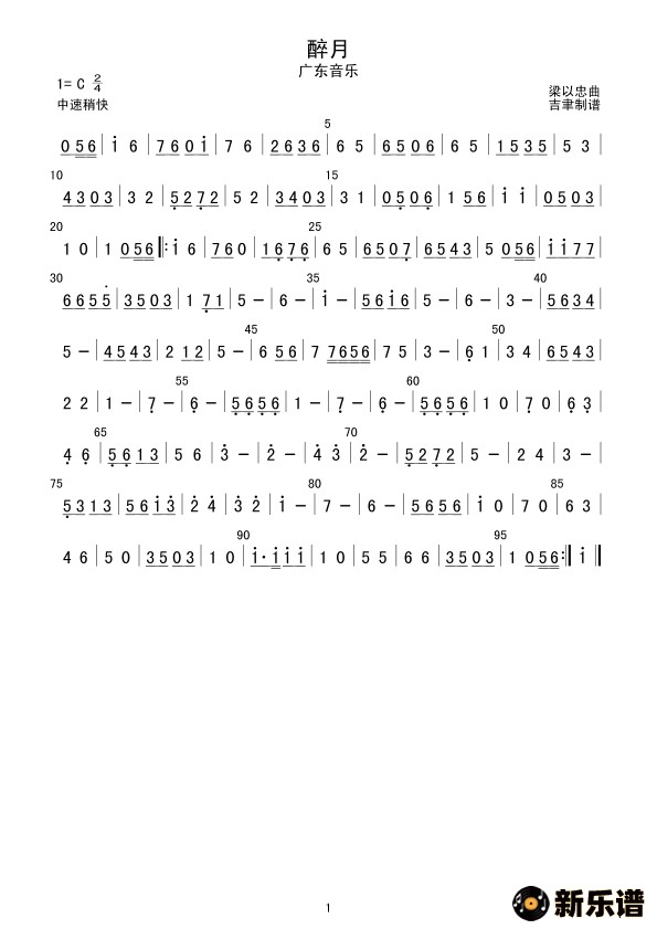 演唱的醉月(广东音乐)歌词,醉月(广东音乐)简谱.