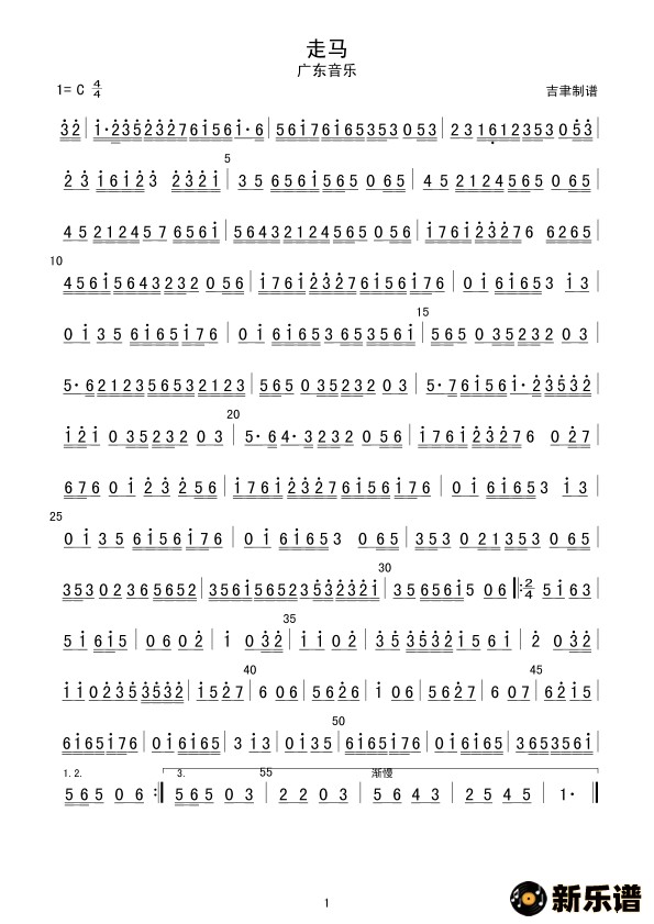 演唱的走马(广东音乐)歌词,走马(广东音乐)简谱.
