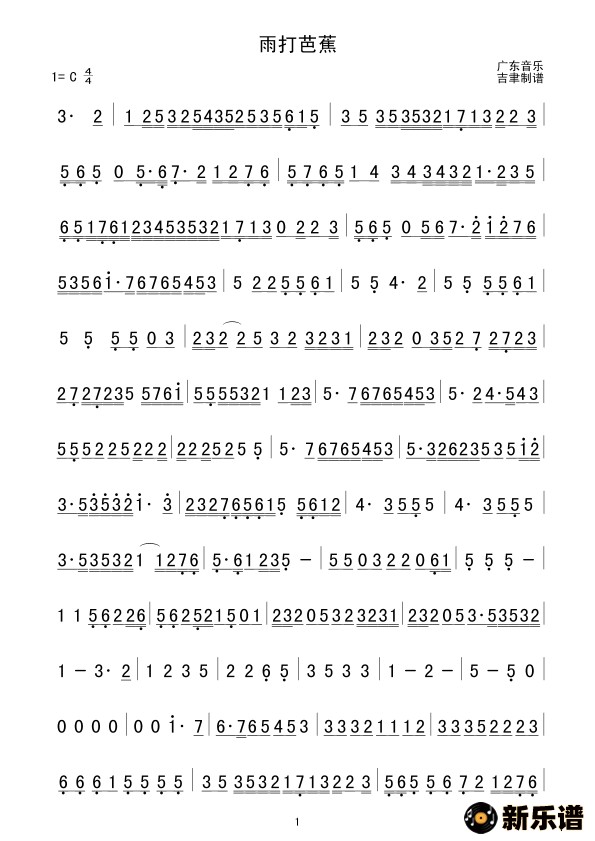 雨打芭蕉(广东音乐)/ 相关曲谱