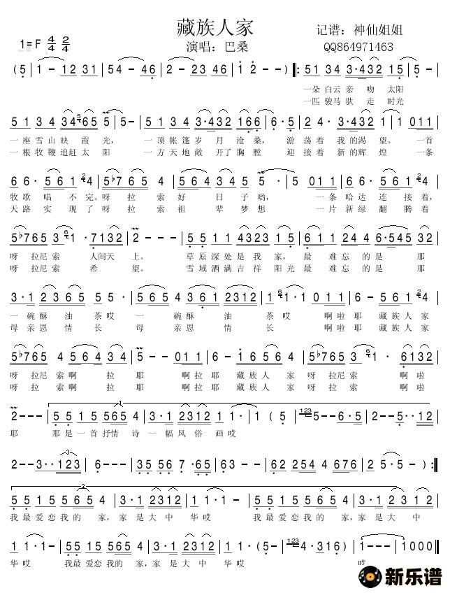 《藏族人家》简谱 巴桑