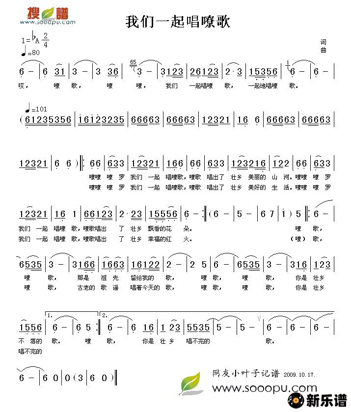 《我们一起唱嘹歌》简谱 城市俊杰-小叶子制谱