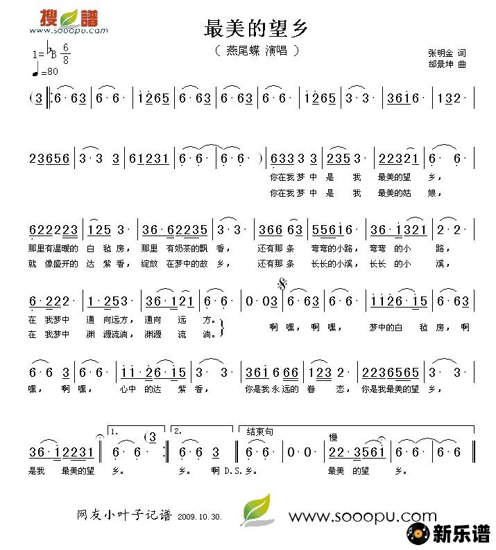 《最美的望乡》简谱 燕尾蝶-小叶子制谱