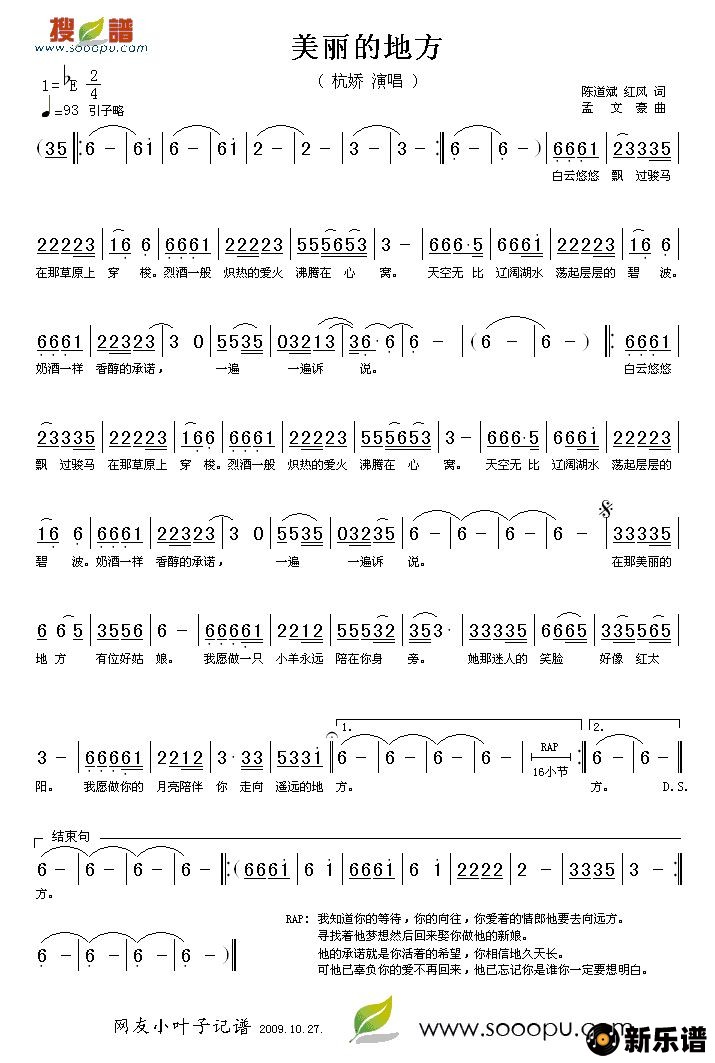 《美丽的地方》简谱 杭娇-小叶子制谱