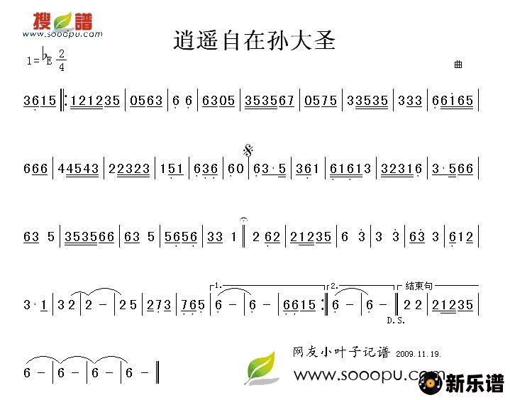 《逍遥自在孙大圣(乐曲谱)》简谱 乐器演奏-小叶子制谱
