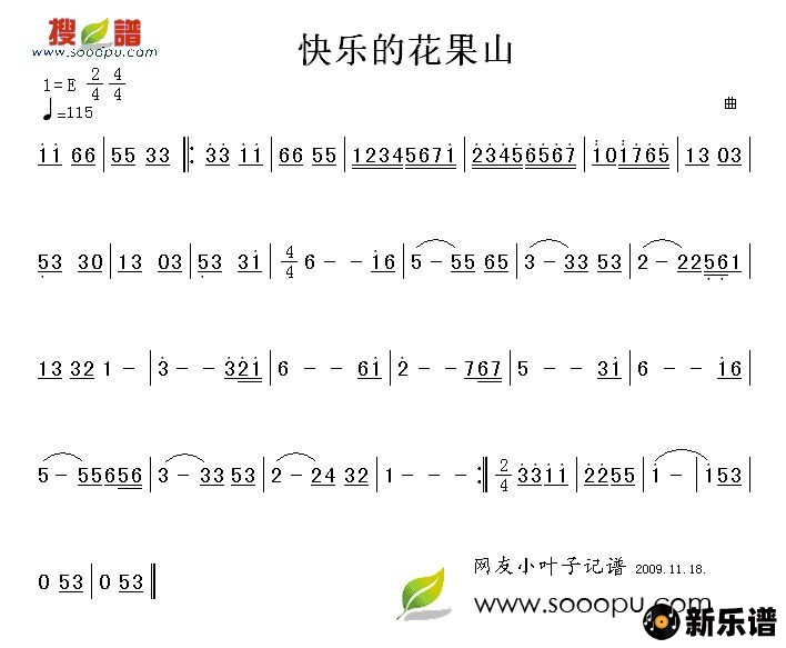 《快乐的花果山》简谱 乐器合奏-小叶子制谱