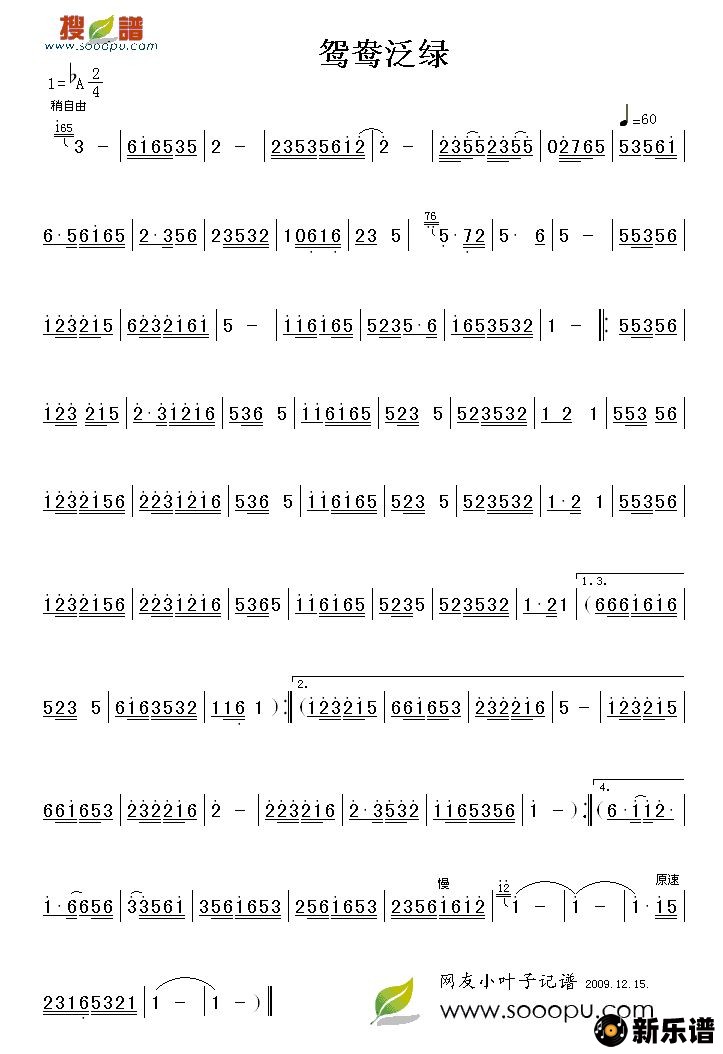 《鸳鸯泛绿》简谱 乐器演奏-小叶子制谱