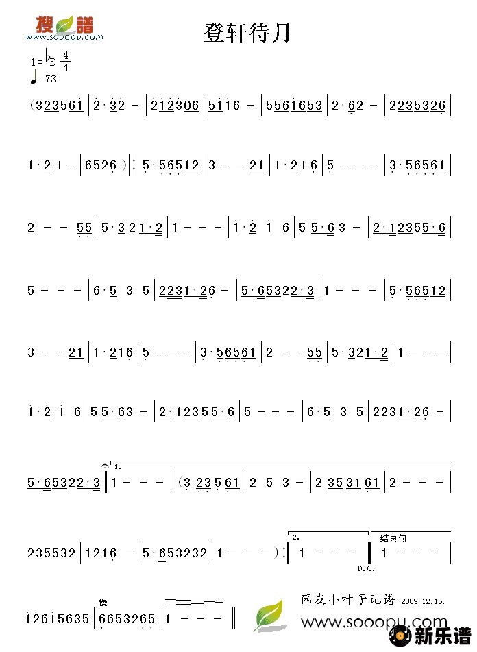 《登轩待月》简谱 乐器演奏-小叶子制谱