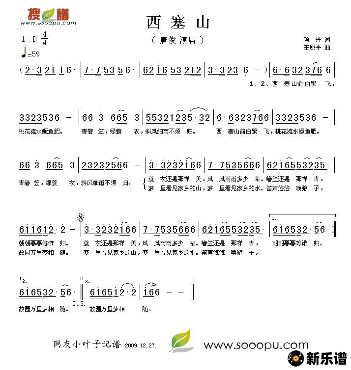 《西塞山》简谱 唐俊-小叶子制谱