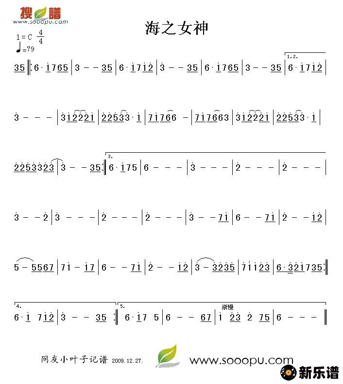 《海之女神》简谱 乐器演奏-小叶子制谱