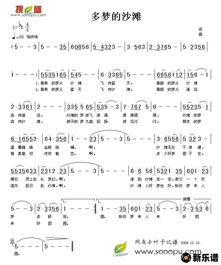 演唱的多梦的沙滩歌词,多梦的沙滩简谱.