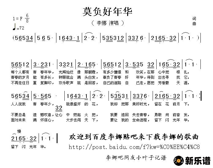 李娜演唱的莫负好年华歌词,莫负好年华简谱.