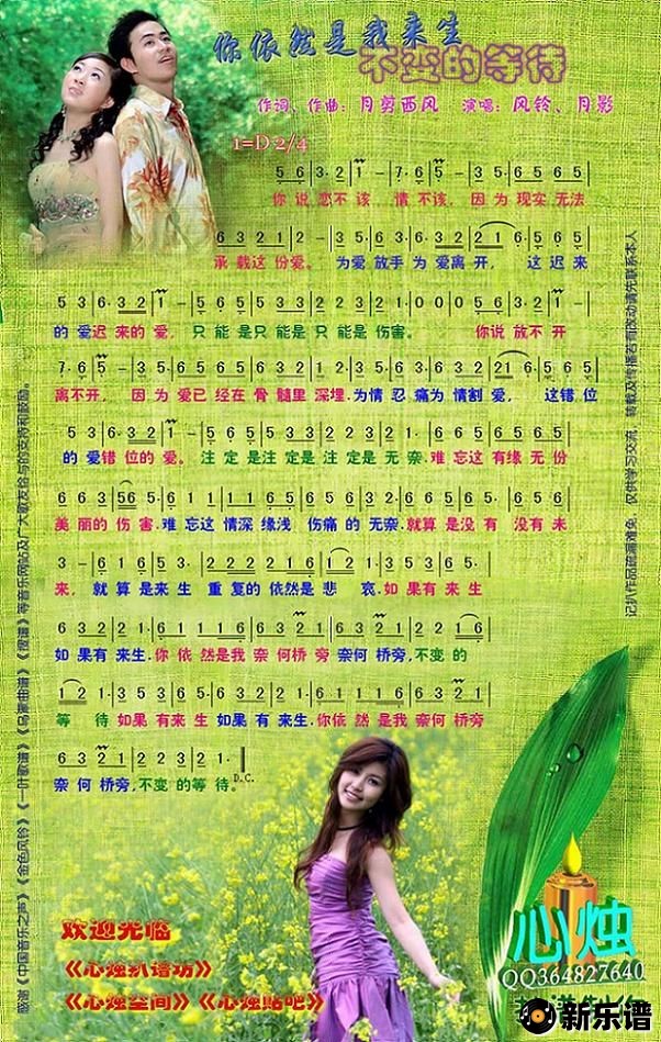 《你依然是我来生不变的等待》简谱 风铃、月影-心烛制谱