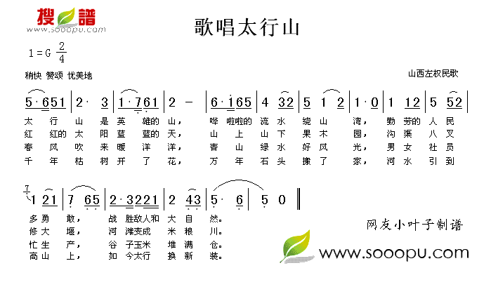 山西左权民歌演唱的歌唱太行山歌词,歌唱太行山简谱.