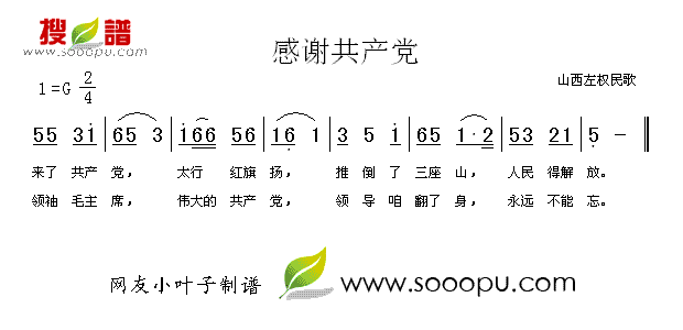 山西左权民歌演唱的感谢共产党歌词,感谢共产党简谱.