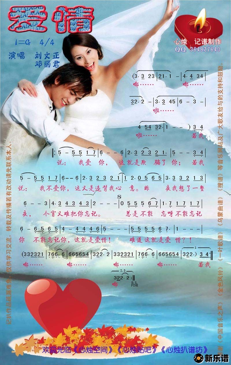 刘文正演唱的爱情(1)歌词,爱情(1)简谱.