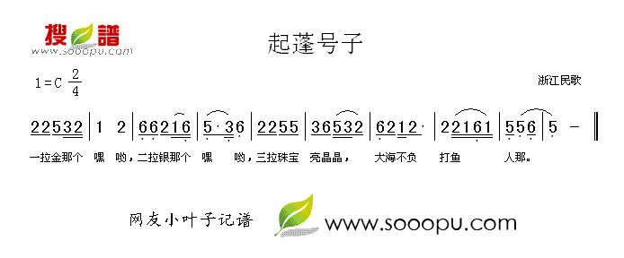 浙江民歌演唱的起蓬号子歌词,起蓬号子简谱.
