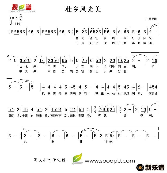 广西民歌演唱的壮乡风光美歌词,壮乡风光美简谱.