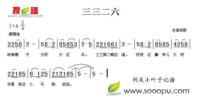 甘肃民歌演唱的三三二六歌词,三三二六简谱.