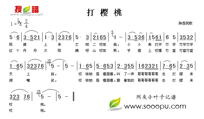 陕西民歌演唱的打樱桃歌词,打樱桃简谱.