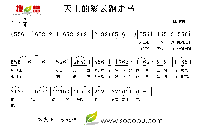 青海民歌演唱的天上的彩云跑走马歌词,天上的彩云跑走马简谱.