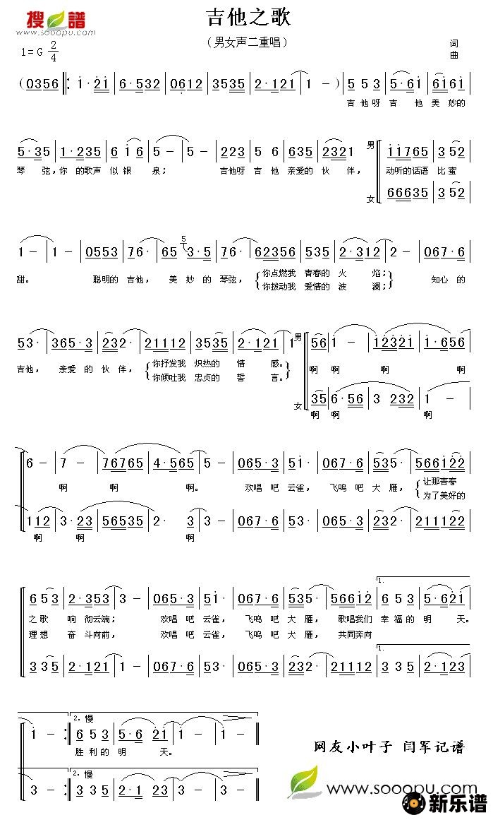 《吉他之歌》简谱 张振富/耿莲凤-小叶子制谱